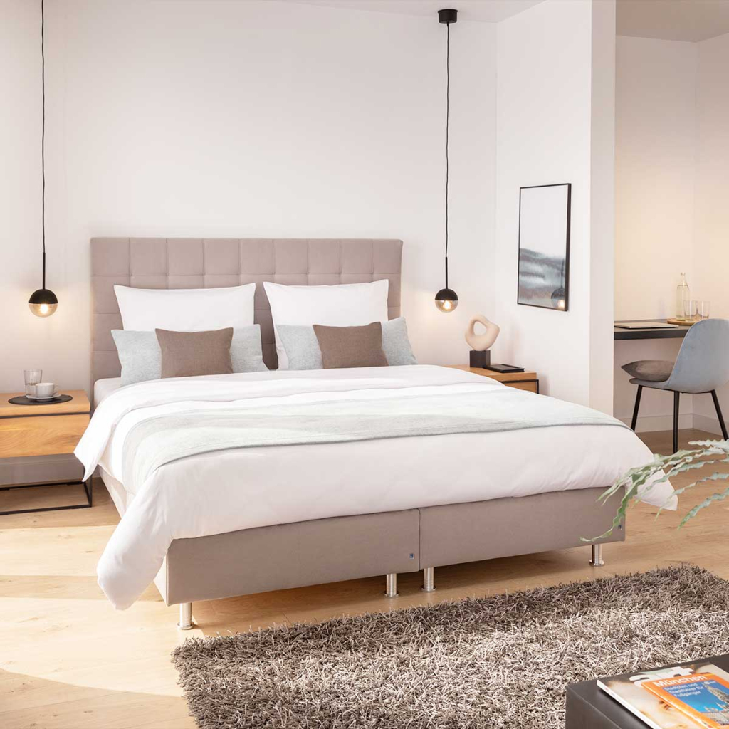 Das typische, federnde Liegegefühl, die elegante Höhe und die repräsentative Optik machen Boxspringbetten zu einem internationalen Qualitätsmerkmal. Sie sind das Rückgrat eines luxuriösen Hotelzimmers und bieten den Gästen ein unverwechselbares Schlaferlebnis. Heute sind sie ein unverzichtbarer Standard in der Premiumhotellerie.